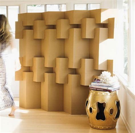 Create functional and appealing room dividers using cardboard, allowing you to easily personalize and separate spaces within your home without the expense of traditional partitions.Do you want to create separate zones within a large open space or add privacy to a room without the need for permanent walls? Cardboard room dividers are the perfect solution. Start by measuring and cutting sturdy cardboard pieces to the desired height and width of your divider. Use hinges or adhesive tape to connect the cardboard panels, allowing them to fold and stand freely. Decorate the dividers with paint, wallpaper, or fabric to match your home's decor. These lightweight, portable, and cost-effective dividers can be easily moved and adjusted, giving you the flexibility to transform your living space as needed.